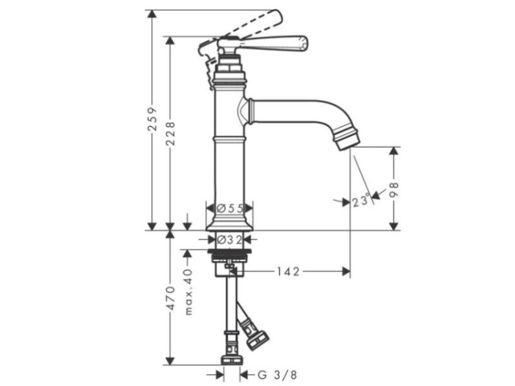 Смеситель для раковины, Hansgrohe, Axor Montreux, тип открывания воды-однорычажный, тип регулирования воды-керамический узел смешивания, отверстия для монтажа-1, высота, мм-228, вынос излива, мм-142, тип подводки-гибкая, стандарт подвода воды-3/8", цвет-хром Смеситель для раковины, Hansgrohe, Axor Montreux, цвет-хром