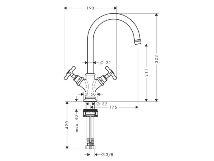 Смеситель для раковины, Hansgrohe, Axor Montreux, тип открывания воды-двухвентильный, тип регулирования воды-керамический узел смешивания, отверстия для монтажа-1, высота, мм-323, вынос излива, мм-175, тип излива-поворотный, угол поворота излива-120°, донный клапан-есть, тип подводки-гибкая, стандарт подвода воды-3/8", цвет-хром Смеситель для раковины, Hansgrohe, Axor Montreux, цвет-хром