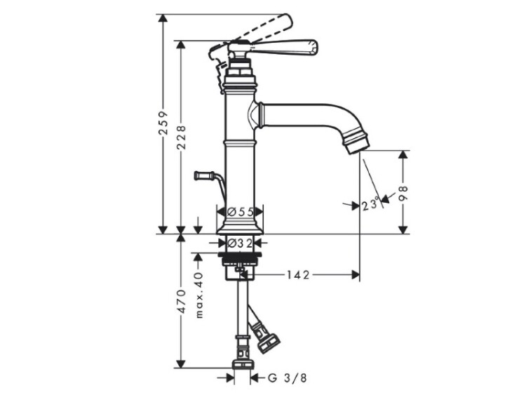 Смеситель для раковины, Hansgrohe, Axor Montreux, тип открывания воды-однорычажный, тип регулирования воды-керамический узел смешивания, отверстия для монтажа-1, высота, мм-228, вынос излива, мм-142, донный клапан-есть, тип подводки-гибкая, стандарт подвода воды-3/8", цвет-полированная медь Смеситель для раковины, Hansgrohe, Axor Montreux, цвет-полированная медь