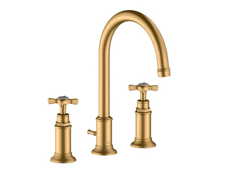 Смеситель для раковины, Hansgrohe, Axor Montreux, тип открывания воды-двухвентильный, тип регулирования воды-керамический узел смешивания, отверстия для монтажа-3, высота, мм-291, вынос излива, мм-175, тип излива-поворотный, угол поворота излива-120°, донный клапан-есть, цвет-шлифованная латунь Смеситель для раковины, Hansgrohe, Axor Montreux, цвет-шлифованная латунь