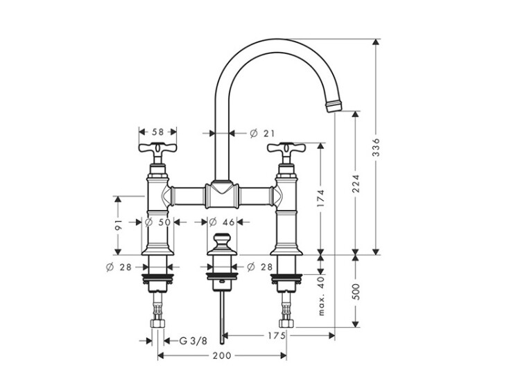 Смеситель для раковины, Hansgrohe, Axor Montreux, тип открывания воды-двухвентильный, тип регулирования воды-керамический вентиль, отверстия для монтажа-2, высота, мм-336, вынос излива, мм-175, донный клапан-есть, стандарт подвода воды-3/8", цвет-шлифованное золото Смеситель для раковины, Hansgrohe, Axor Montreux, цвет-шлифованное золото