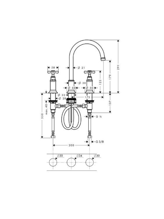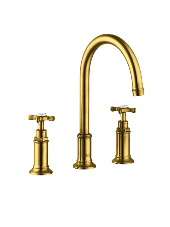 Смеситель для раковины, Hansgrohe, Axor Montreux, тип открывания воды-двухвентильный, тип регулирования воды-керамический узел смешивания, отверстия для монтажа-3, высота, мм-291, вынос излива, мм-175, тип излива-поворотный, угол поворота излива-120°, донный клапан-есть, цвет-шлифованное золото Смеситель для раковины, Hansgrohe, Axor Montreux, цвет-шлифованное золото