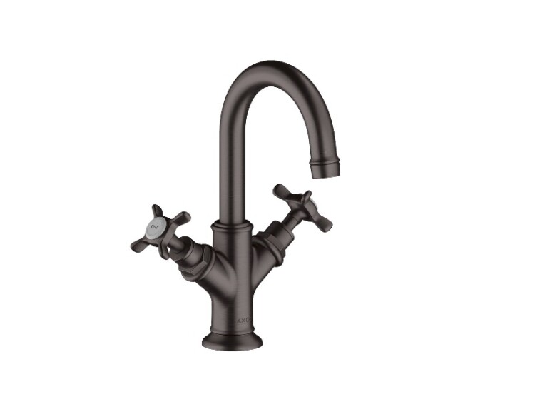 Смеситель для раковины, Hansgrohe, Axor Montreux, тип открывания воды-двухвентильный, тип регулирования воды-керамический узел смешивания, отверстия для монтажа-1, высота, мм-243, вынос излива, мм-117, тип излива-поворотный, угол поворота излива-120°, донный клапан-есть, тип подводки-гибкая, стандарт подвода воды-3/8", цвет-шлифованный черный хром, для маленькой раковины Смеситель для раковины, Hansgrohe, Axor Montreux, цвет-шлифованный черный хром