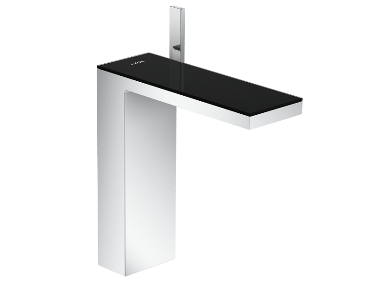 Смеситель для раковины, Hansgrohe, Axor MyEdition, тип открывания воды-однорычажный, тип регулирования воды-керамический картридж, отверстия для монтажа-1, вынос излива, мм-196, донный клапан-есть, цвет-хром/черное стекло, регулируемое ограничение температуры, с изолированной подачей воды, струя PowderRain Смеситель для раковины, Hansgrohe, Axor MyEdition, цвет-хром/черное стекло