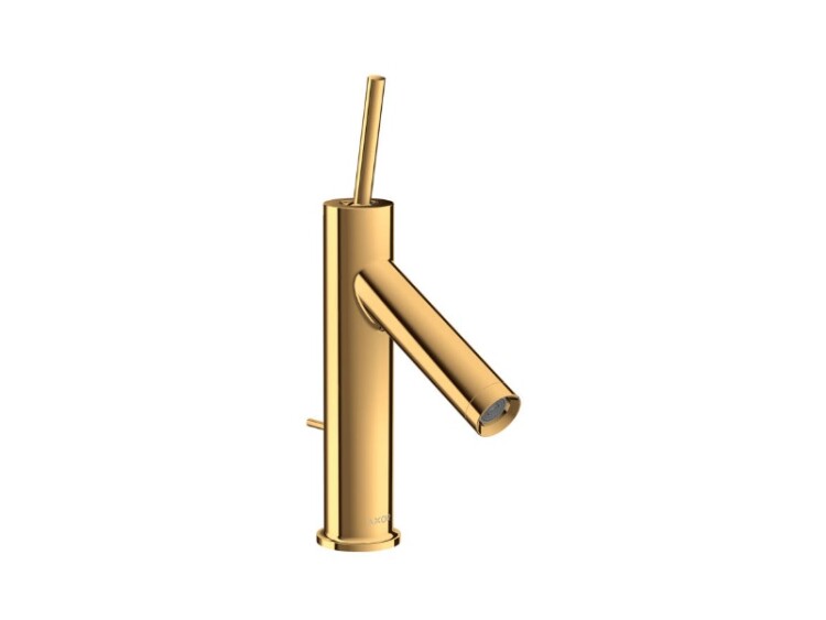 Смеситель для раковины, Hansgrohe, Axor Starck, тип открывания воды-однорычажный, тип регулирования воды-керамический узел смешивания, отверстия для монтажа-1, высота, мм-255, вынос излива, мм-112, вид ручки-джойстикового типа, донный клапан-есть, тип подводки-гибкая, стандарт подвода воды-3/8", цвет-полированное золото Смеситель для раковины, Hansgrohe, Axor Starck, цвет-полированное золото