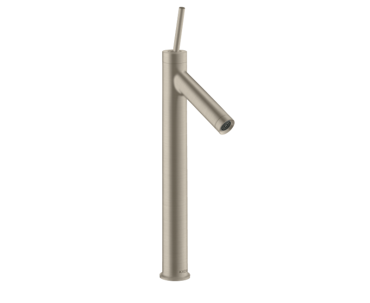 Смеситель для раковины, Hansgrohe, Axor Starck, тип открывания воды-однорычажный, тип регулирования воды-керамический узел смешивания, отверстия для монтажа-1, высота, мм-410, вынос излива, мм-112, вид ручки-джойстикового типа, стандарт подвода воды-3/8", цвет-шлифованный никель Смеситель для раковины, Hansgrohe, Axor Starck, цвет-шлифованный никель