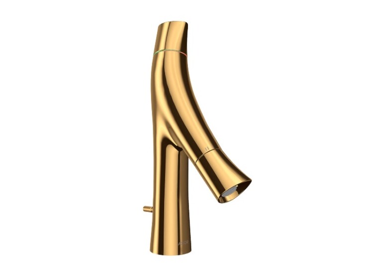 Смеситель для раковины, Hansgrohe, Axor Starck Organic, тип регулирования воды-керамический картридж, отверстия для монтажа-1, высота, мм-280, вынос излива, мм-116, донный клапан-есть, стандарт подвода воды-3/8", цвет-полированное золото, с двумя рукоятками Смеситель для раковины, Hansgrohe, Axor Starck Organic, цвет-полированное золото