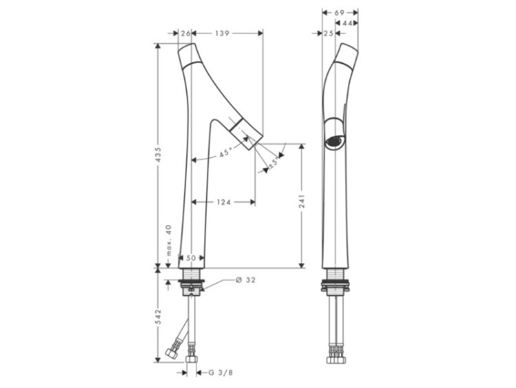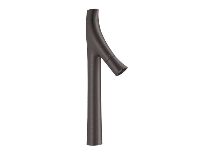 Смеситель для раковины, Hansgrohe, Axor Starck Organic, тип регулирования воды-керамический картридж, отверстия для монтажа-1, высота, мм-435, вынос излива, мм-124, вид ручки-с двумя рукоятками, стандарт подвода воды-3/8", цвет-шлифованный черный хром, душевая струя, регулируемый формирователь струи, раздельная регулировка температуры/объема воды Смеситель для раковины, Hansgrohe, Axor Starck Organic, цвет-шлифованный черный хром