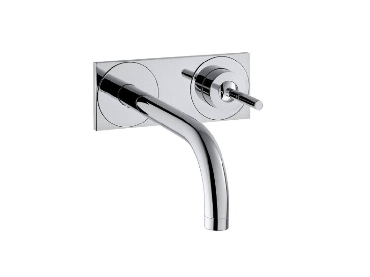 Смеситель для раковины, Hansgrohe, Axor Uno, тип открывания воды-однорычажный, тип регулирования воды-керамический узел смешивания, тип установки-настенный, отверстия для монтажа-2, вынос излива, мм-165, вид ручки-джойстикового типа, внутренняя часть-необходимо заказать, цвет-хром, с панелью, с возможностью размещения рукоятки справа или слева Смеситель для раковины, Hansgrohe, Axor Uno, цвет-хром
