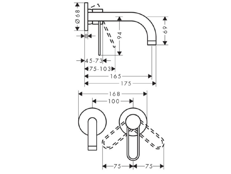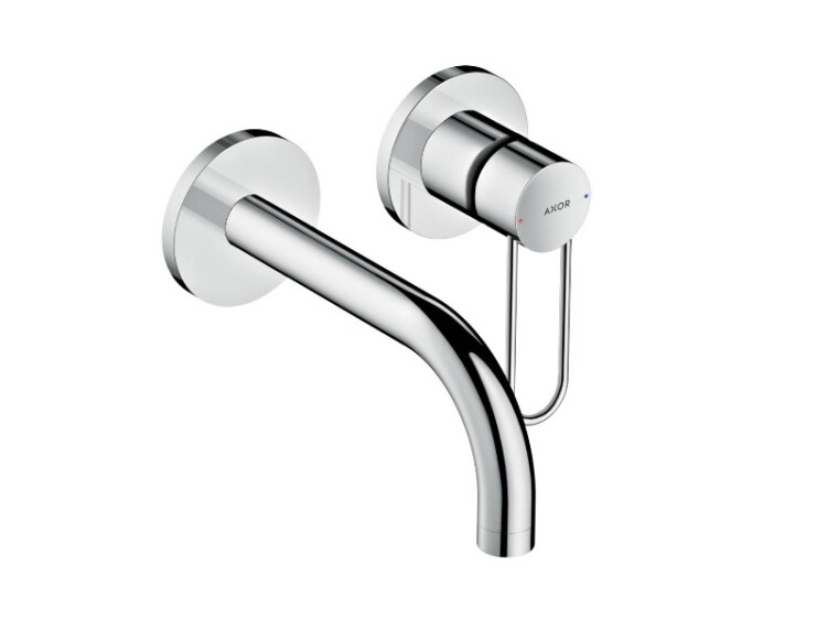 Смеситель для раковины, Hansgrohe, Axor Uno, тип открывания воды-однорычажный, тип регулирования воды-керамический узел смешивания, тип установки-настенный, отверстия для монтажа-2, вынос излива, мм-165, вид ручки-петля, с возможностью размещения рукоятки справа или слева, цвет-хром Смеситель для раковины, Hansgrohe, Axor Uno, цвет-хром