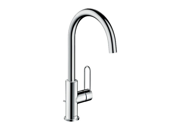 Смеситель для раковины, Hansgrohe, Axor Uno, тип открывания воды-однорычажный, тип регулирования воды-керамический узел смешивания, отверстия для монтажа-1, высота, мм-345, вынос излива, мм-174, тип излива-поворотный, угол поворота излива-115°, вид ручки-петля, донный клапан-есть, тип подводки-гибкая, стандарт подвода воды-3/8", цвет-шлифованная медь Смеситель для раковины, Hansgrohe, Axor Uno, цвет-шлифованная медь