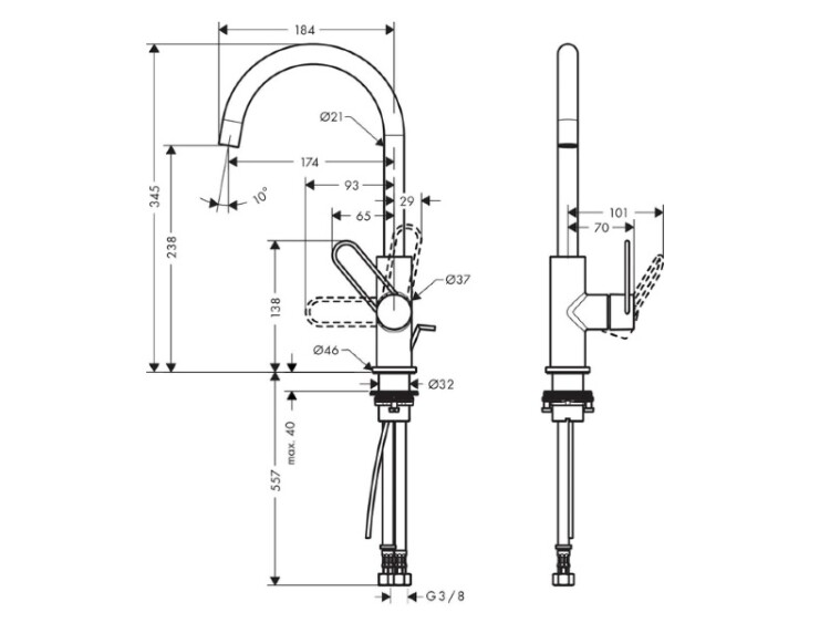 Цвет ручки | в цвет смесителя |