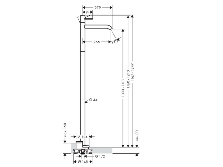Смеситель для раковины, Hansgrohe, Axor Uno, тип открывания воды-однорычажный, тип регулирования воды-керамический узел смешивания, тип установки-напольный, отверстия для монтажа-1, высота, мм-1240, вынос излива, мм-266, вид ручки-петля, стандарт подвода воды-1/2", внутренняя часть-необходимо заказать, цвет-шлифованное золото Смеситель для раковины, Hansgrohe, Axor Uno, цвет-шлифованное золото