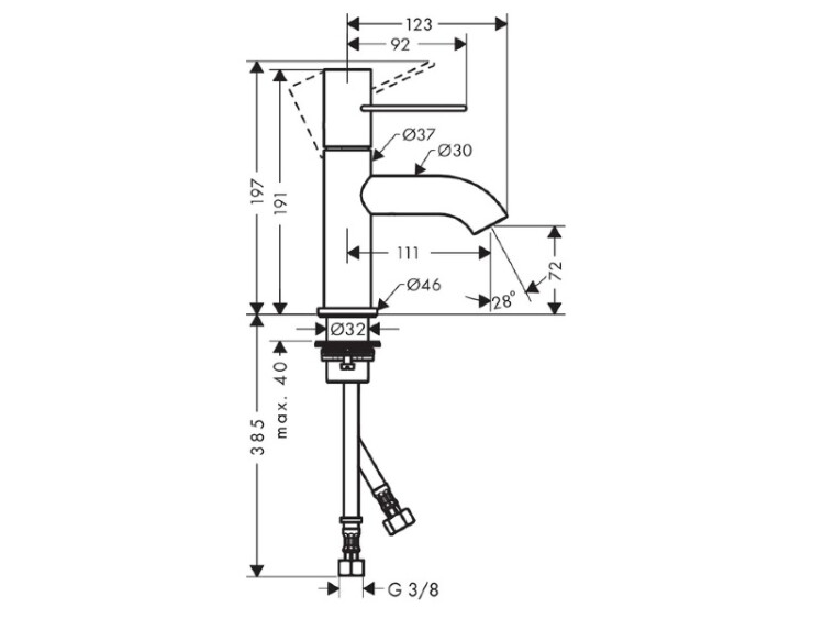 Смеситель для раковины, Hansgrohe, Axor Uno, тип открывания воды-однорычажный, отверстия для монтажа-1, высота, мм-197, вынос излива, мм-111, вид ручки-петля, цвет-шлифованный черный хром Смеситель для раковины, Hansgrohe, Axor Uno, цвет-шлифованный черный хром