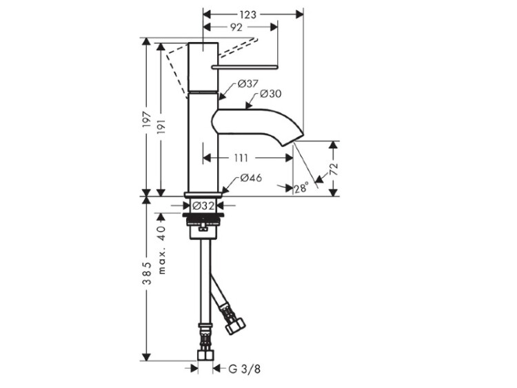 Смеситель для раковины, Hansgrohe, Axor Uno, тип открывания воды-однорычажный, отверстия для монтажа-1, высота, мм-191, вынос излива, мм-111, вид ручки-петля, стандарт подвода воды-3/8", цвет-шлифованный никель Смеситель для раковины, Hansgrohe, Axor Uno, цвет-шлифованный никель