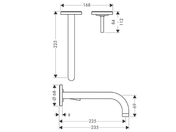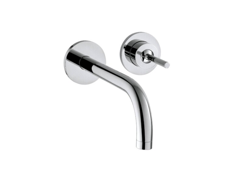 Смеситель для раковины, Hansgrohe, Axor Uno, тип открывания воды-однорычажный, тип регулирования воды-керамический узел смешивания, тип установки-встраиваемый в стену, отверстия для монтажа-2, вынос излива, мм-225, вид ручки-джойстикового типа, внутренняя часть-необходимо заказать, цвет-сталь, с возможностью размещения рукоятки справа или слева Смеситель для раковины, Hansgrohe, Axor Uno, цвет-сталь