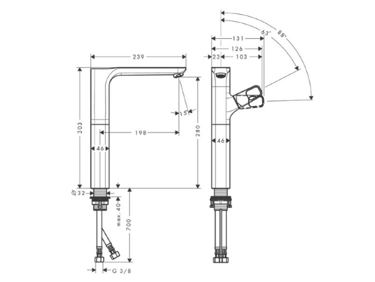 Смеситель для раковины, Hansgrohe, Axor Urquiola, тип открывания воды-однорычажный, тип регулирования воды-керамический узел смешивания, отверстия для монтажа-1, высота, мм-303, вынос излива, мм-198, стандарт подвода воды-3/8", цвет-хром, с незапираемым сливным набором Смеситель для раковины, Hansgrohe, Axor Urquiola, цвет-хром
