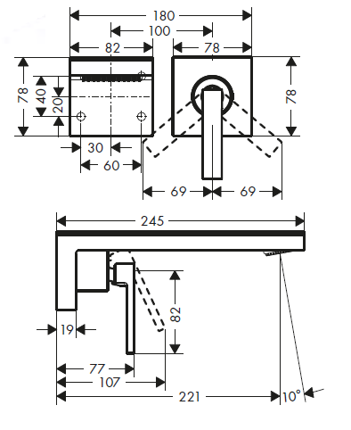 Смеситель для раковины, Axor, Axor MyEdition, без пластины, тип открывания воды-однорычажный, тип регулирования воды-керамический картридж, монтаж-настенный встраиваемый, отверстия для монтажа-2, высота, мм-78, вынос излива, мм-221, тип излива-неподвижный, донный клапан-отсутствует, тип подводки-жесткая, внутренняя часть-необходимо заказать, цвет-золото шлифованное Смеситель для раковины, Axor, Axor MyEdition, без пластины, цвет-золото шлифованное