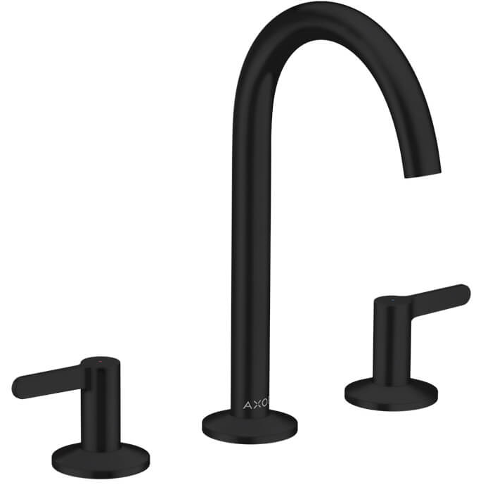 Смеситель для раковины, Axor, Axor One, тип открывания воды-вентильный, монтаж-на раковину/столешницу, отверстия для монтажа-3, высота, мм-246, вынос излива, мм-140, тип излива-поворотный, донный клапан-есть, Push-Open, тип подводки-гибкая, стандарт подвода воды-3/8", цвет-черный матовый Смеситель для раковины, Axor, Axor One, цвет-черный матовый