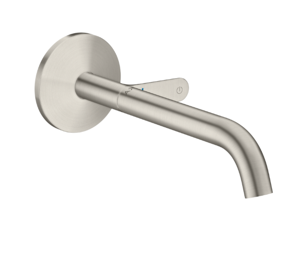 Смеситель для раковины, Axor, Axor One, тип открывания воды-однорычажный, тип регулирования воды-керамический картридж, монтаж-настенный встраиваемый, отверстия для монтажа-1, высота, мм-80, вынос излива, мм-220, тип излива-неподвижный, донный клапан-есть, тип подводки-жесткая, внутренняя часть-необходимо заказать, цвет-сталь Смеситель для раковины, Axor, Axor One, цвет-сталь