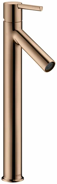Смеситель для раковины, Axor, Axor Starck, тип открывания воды-однорычажный, тип регулирования воды-керамический картридж, монтаж-на раковину/столешницу, отверстия для монтажа-1, высота, мм-363, вынос излива, мм-107, тип излива-неподвижный, донный клапан-отсутствует, тип подводки-гибкая, стандарт подвода воды-3/8", цвет-золото красное полированное Смеситель для раковины, Axor, Axor Starck, цвет-золото красное полированное