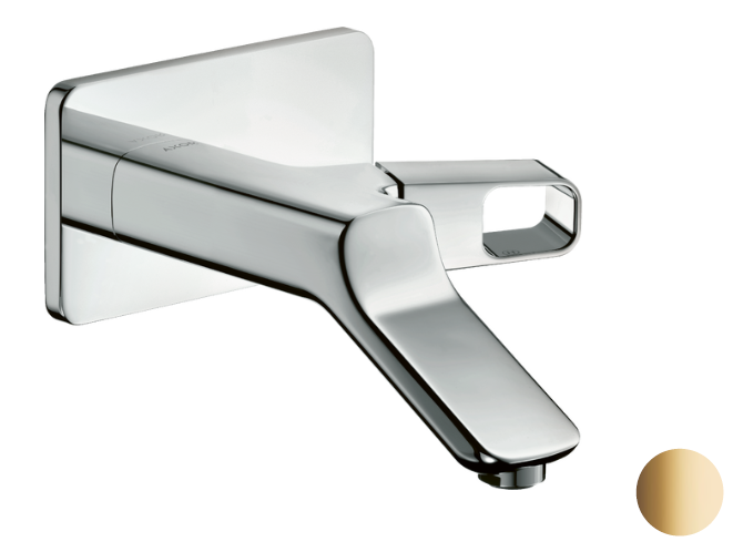 Смеситель для раковины, Axor, Axor Urquiola, тип открывания воды-однорычажный, тип регулирования воды-керамический картридж, монтаж-настенный встраиваемый, отверстия для монтажа-1, вынос излива, мм-200, внутренняя часть-необходимо заказать, цвет-полированное золото Смеситель для раковины, Axor, Axor Urquiola, цвет-полированное золото