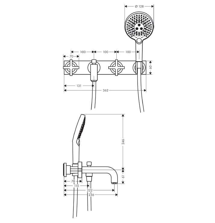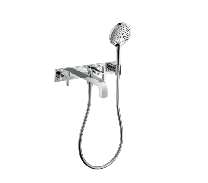 Смеситель для ванны и душа, Axor, Axor Citterio, тип открывания воды-вентильный, тип регулирования воды-керамическая кран-букса, монтаж-настенный встраиваемый, отверстия для монтажа-4, вынос излива, мм-222, тип излива-неподвижный, ручной душ-в комплекте, внутренняя часть-необходимо заказать, цвет-хром Смеситель для ванны и душа, Axor, Axor Citterio, цвет-хром