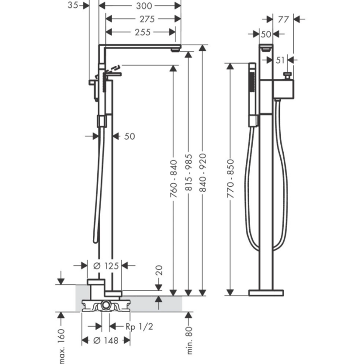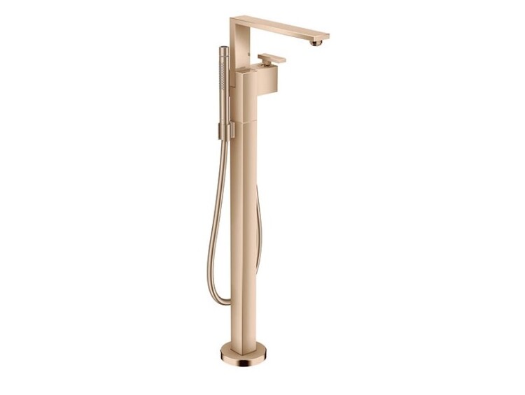 Смеситель для ванны и душа, Axor, Axor Edge, тип открывания воды-однорычажный, тип регулирования воды-керамический картридж, монтаж-напольный, отверстия для монтажа-1, вынос излива, мм-255, тип излива-неподвижный, ручной душ-в комплекте, внутренняя часть-необходимо заказать, цвет-золото красное полированное Смеситель для ванны и душа, Axor, Axor Edge, цвет-золото красное полированное