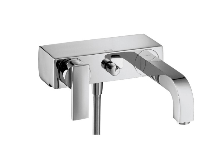 Смеситель для ванны и душа, Hansgrohe, Axor Citterio, тип открывания воды-однорычажный, тип регулирования воды-керамический узел смешивания, тип установки-настенный, отверстия для монтажа-2, вынос излива, мм-255, тип излива-неподвижный, цвет-хром, с переключателем вакуумного типа, клапан обратного тока воды, шумопоглотителем Смеситель для ванны и душа, Hansgrohe, Axor Citterio, цвет-хром
