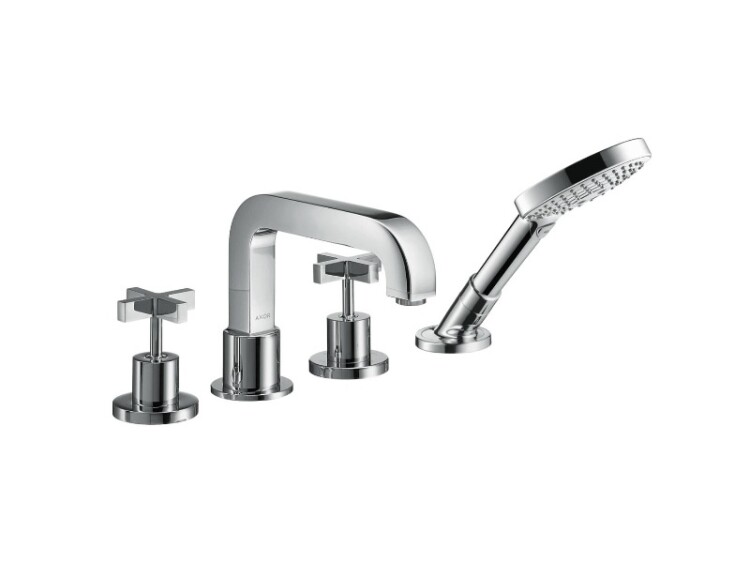 Смеситель для ванны и душа, Hansgrohe, Axor Citterio, тип открывания воды-двухвентильный, тип регулирования воды-керамический вентиль, тип установки-на плитку, отверстия для монтажа-4, вынос излива, мм-190, вид ручки-крестовый, внутренняя часть-необходимо заказать, цвет-шлифованная медь, комплектация-встраиваемый держатель ручного душа, выдвижной ручной душ Смеситель для ванны и душа, Hansgrohe, Axor Citterio, цвет-шлифованная медь