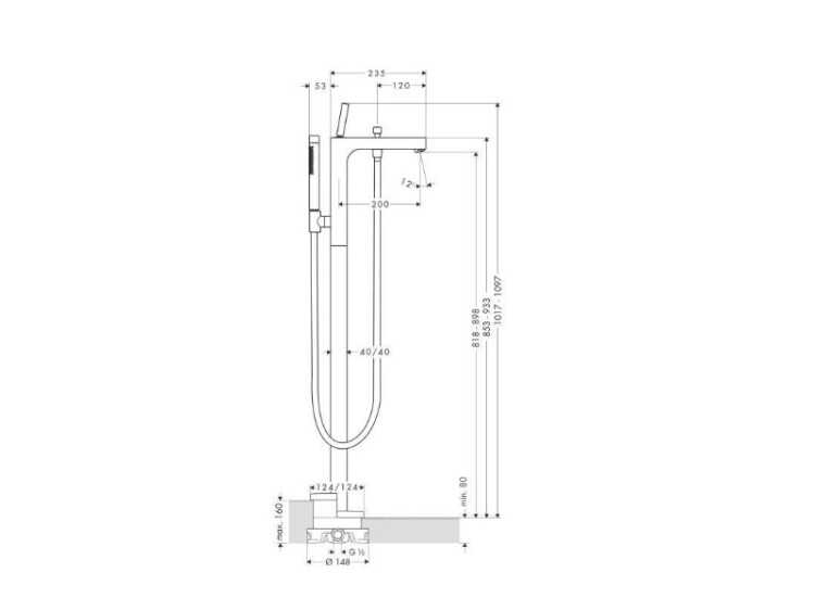 Смеситель для ванны и душа, Hansgrohe, Axor Citterio, тип открывания воды-однорычажный, тип регулирования воды-керамический узел смешивания, тип установки-напольный, отверстия для монтажа-1, вынос излива, мм-200, вид ручки-джойстикового типа, внутренняя часть-необходимо заказать, цвет-сталь, комплектация-встраиваемый держатель душа, ручной душ,мм-190*24, вид-цилиндрический, тип струи-обычная, мягкая, шланг,мм-1250 Смеситель для ванны и душа, Hansgrohe, Axor Citterio, цвет-сталь