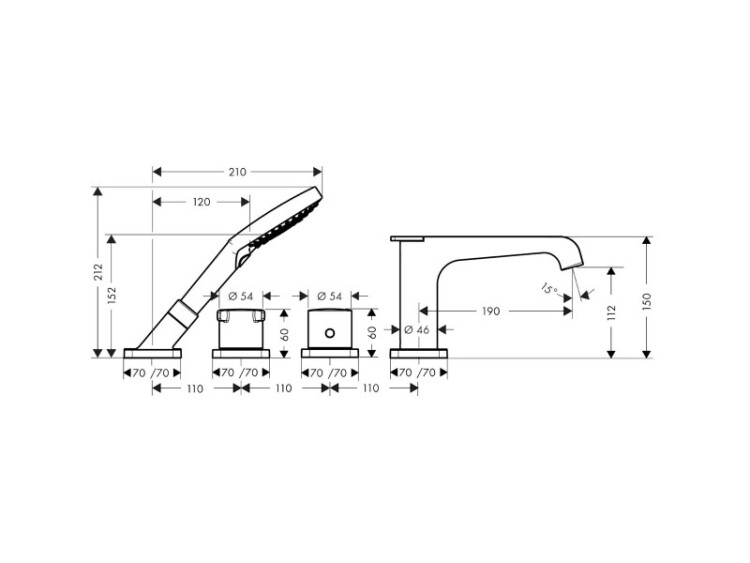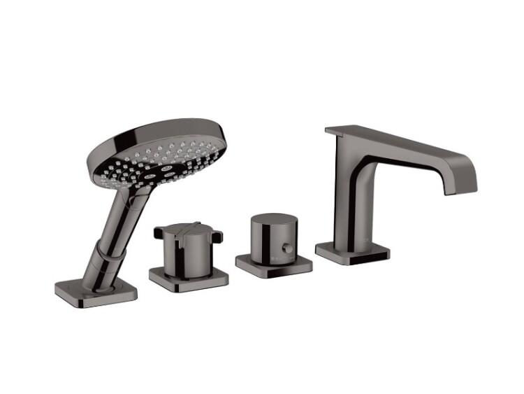 Смеситель для ванны и душа, Hansgrohe, Axor Citterio E, тип регулирования воды-термостатический картридж, тип установки-на край ванны, отверстия для монтажа-4, вынос излива, мм-190, внутренняя часть-необходимо заказать, цвет-полированный черный хром, комплектация-встроенный держатель ручного душа, ручной душ, максимальная длина ручного душа в вытянутом состоянии,мм-1100, 2-переключателя Смеситель для ванны и душа, Hansgrohe, Axor Citterio E, цвет-полированный черный хром
