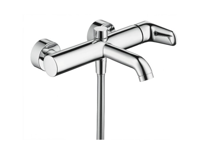 Смеситель для ванны и душа, Hansgrohe, Axor Citterio M, тип открывания воды-однорычажный, тип регулирования воды-керамический узел смешивания, тип установки-настенный, отверстия для монтажа-2, вынос излива, мм-200, цвет-полированное золото, регулируемое ограничение температуры, с переключателем вакуумного типа, клапан обратного тока воды, с шумопоглотителем Смеситель для ванны и душа, Hansgrohe, Axor Citterio M, цвет-полированное золото