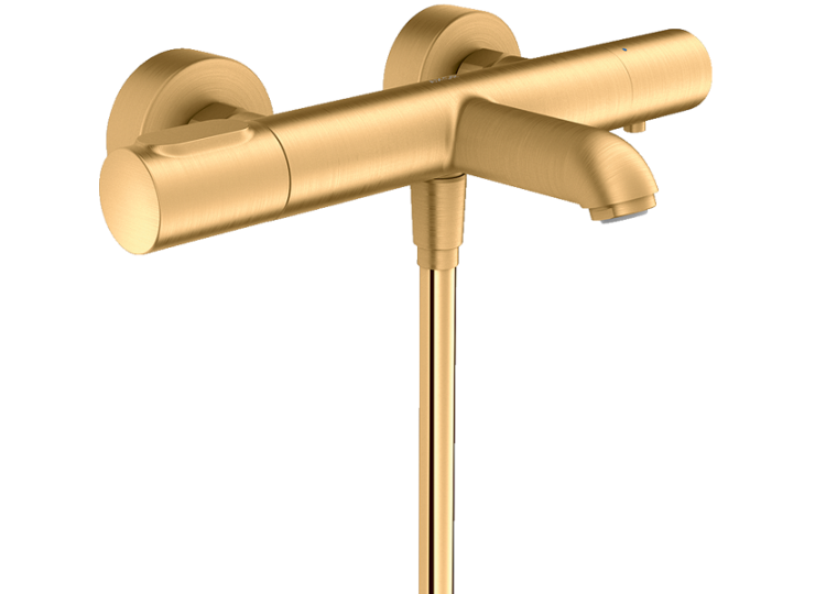 Смеситель для ванны и душа, Hansgrohe, Axor Citterio M, тип регулирования воды-термостатический картридж, тип установки-настенный, отверстия для монтажа-2, вынос излива, мм-185, цвет-полированное золото, 2 потребителя, запорный и переключающий вентиль, предохранительный ограничитель при 40°C, регулируемое ограничениетель температуры, клапан обратного тока воды, с шумопоглотителем Смеситель для ванны и душа, Hansgrohe, Axor Citterio M, цвет-полированное золото