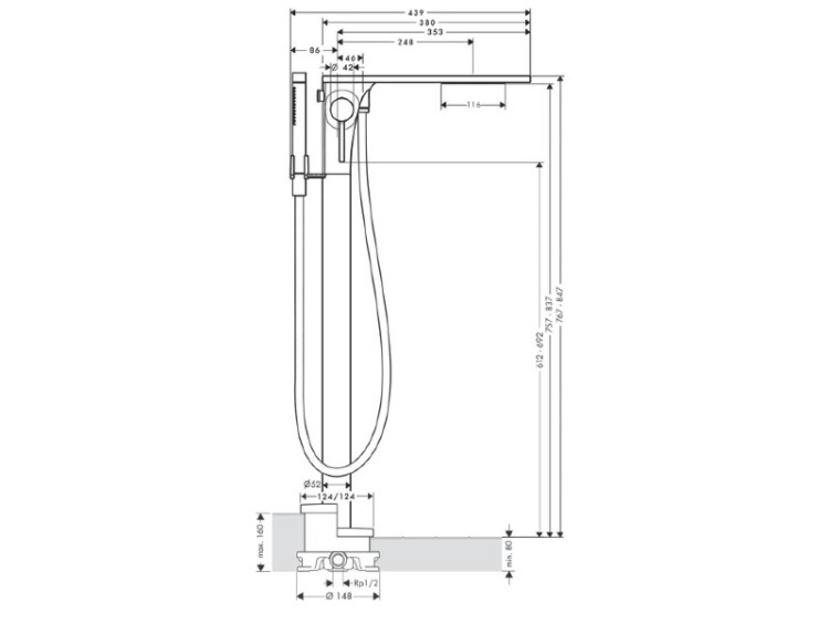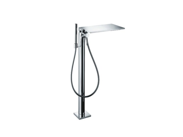 Смеситель для ванны и душа, Hansgrohe, Axor Massaud, тип открывания воды-однорычажный, тип регулирования воды-керамический узел смешивания, тип установки-напольный, отверстия для монтажа-1, вынос излива, мм-248, внутренняя часть-необходимо заказать, цвет-шлифованное золото, комплектация-переключатель, ручной душ Axor Starck, тип струи-обычная, мягкая струя, держатель душа, шланг,мм-1250 Смеситель для ванны и душа, Hansgrohe, Axor Massaud, цвет-шлифованное золото