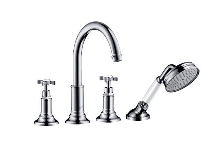 Смеситель для ванны и душа, Hansgrohe, Axor Montreux, тип открывания воды-двухвентильный, тип регулирования воды-керамический узел смешивания, тип установки-на плитку, отверстия для монтажа-4, вынос излива, мм-196, внутренняя часть-необходимо заказать, цвет-хром, в комплекте-вытяжной ручной душ с белой рукояткой ½’, форма-круглая, размер душевого диска,мм-100, тип струи: RainAir, максимальное расстояние, на которое вытягивается ручной душ,мм-1100 Смеситель для ванны и душа, Hansgrohe, Axor Montreux, цвет-хром