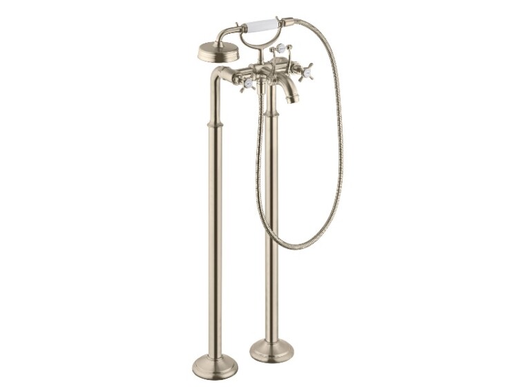 Смеситель для ванны и душа, Hansgrohe, Axor Montreux, тип открывания воды-двухвентильный, тип регулирования воды-керамический узел смешивания, тип установки-напольный, отверстия для монтажа-2, вынос излива, мм-234, внутренняя часть-необходимо заказать, цвет-шлифованный никель, в комплекте-держатель ручного душа, ручной душ с белой рукояткой, ½’, форма-круглая, размер душевого диска,мм-100, тип струи-RainAir, металлический шланг,мм-1250 Смеситель для ванны и душа, Hansgrohe, Axor Montreux, цвет-шлифованный никель