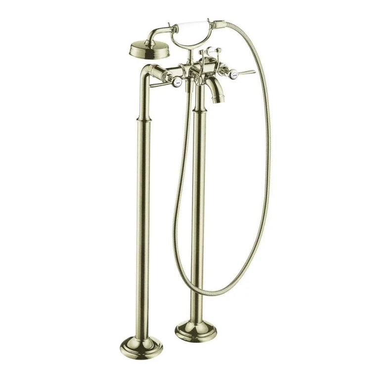 Смеситель для ванны и душа, Hansgrohe, Axor Montreux, тип открывания воды-двухрычажный, тип регулирования воды-керамический вентиль, тип установки-напольный, отверстия для монтажа-2, вынос излива, мм-234, вид ручки-рукоятка, в комплекте-держатель ручного душа, ручной душ с белой рукояткой, ½’, форма-круглая, размер душевого диска-100, тип струи-RainAir, металлический шланг,мм-1250, внутренняя часть-необходимо заказать, цвет-сталь Смеситель для ванны и душа, Hansgrohe, Axor Montreux, цвет-сталь