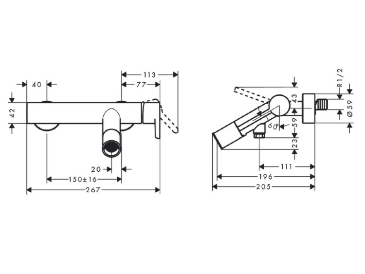 Смеситель для ванны и душа, Hansgrohe, Axor Starck, тип открывания воды-однорычажный, тип регулирования воды-керамический узел смешивания, тип установки-настенный, отверстия для монтажа-2, вынос излива, мм-200, цвет-хром, регулируемое ограничение температуры, с переключателем вакуумного типа, клапан обратного тока воды, с шумопоглотителем Смеситель для ванны и душа, Hansgrohe, Axor Starck, цвет-хром