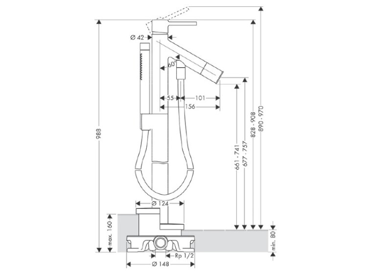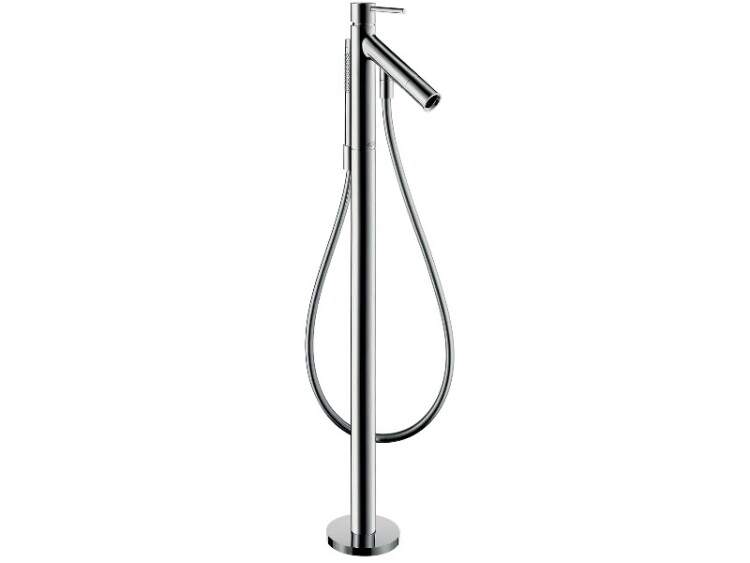 Смеситель для ванны и душа, Hansgrohe, Axor Starck, тип открывания воды-однорычажный, тип регулирования воды-керамический узел смешивания, тип установки-напольный, отверстия для монтажа-1, вынос излива, мм-156, внутренняя часть-необходимо заказать, цвет-шлифованная бронза, в комплекте-держатель ручного душа, ручной душ Axor Starck, форма-цилиндрическая, тип струи-Rain, Mono, шланг с металлическим эффектом,мм-1250, переключатель вакуумного типа Смеситель для ванны и душа, Hansgrohe, Axor Starck, цвет-шлифованная бронза