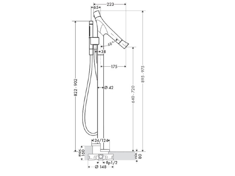 Смеситель для ванны и душа, Hansgrohe, Axor Starck Organic, тип открывания воды-одновентильный, тип регулирования воды-термостатический картридж, тип установки-напольный, отверстия для монтажа-1, вынос излива, мм-175, внутренняя часть-необходимо заказать, цвет-хром, комплетация-переключатель, ручной душ Axor Starck, тип струи-обычная, мягкая струя, встроенный держатель ручного душа, шланг,мм-1250 Смеситель для ванны и душа, Hansgrohe, Axor Starck Organic, цвет-хром