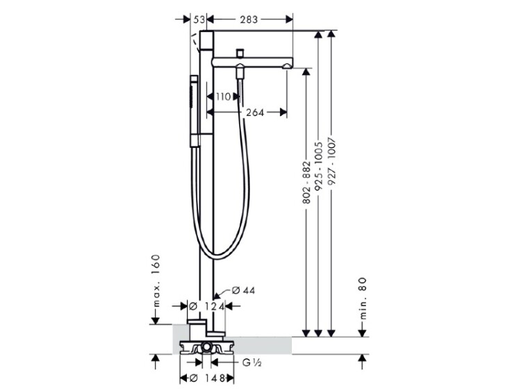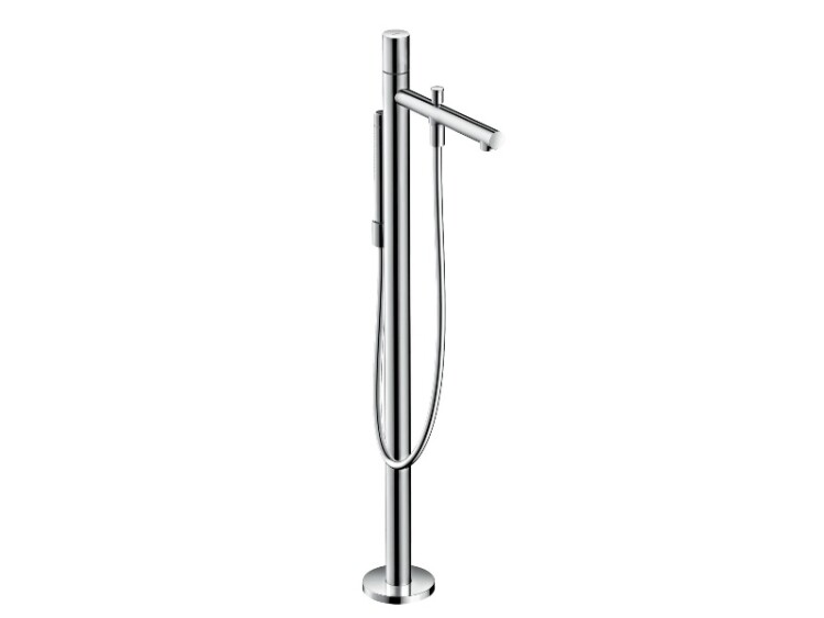 Смеситель для ванны и душа, Hansgrohe, Axor Uno, тип открывания воды-однорычажный, тип установки-напольный, отверстия для монтажа-1, вынос излива, мм-264, вид ручки-zero, внутренняя часть-необходимо заказать, цвет-полированное золото, комплектация-переключатель, ручной душ Axor Starck, 2 типа струи - Rain, Mono, держатель душа, шланг 1250 мм Смеситель для ванны и душа, Hansgrohe, Axor Uno, цвет-полированное золото