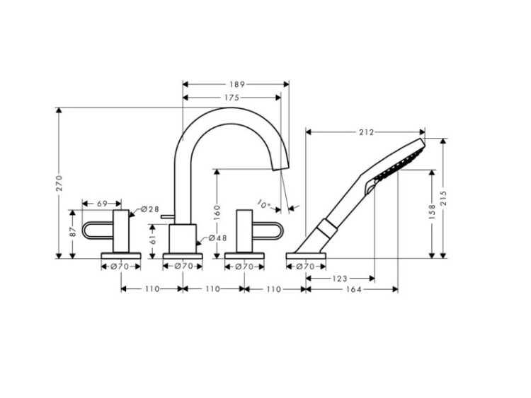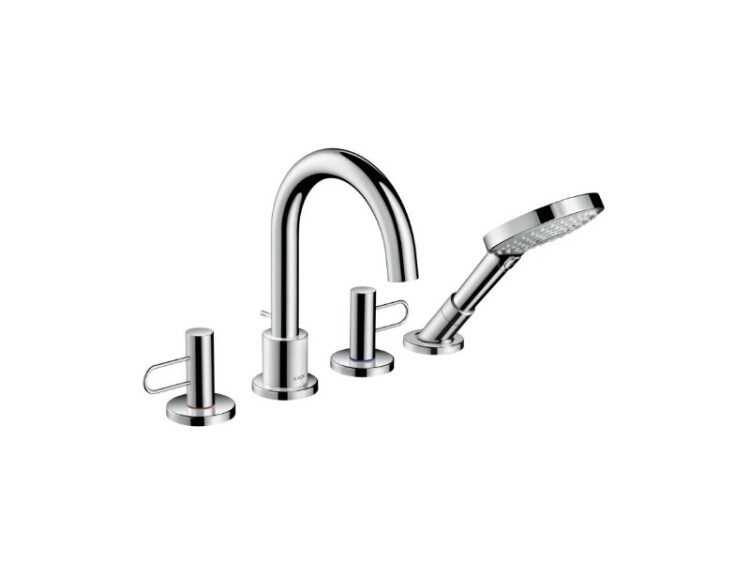 Смеситель для ванны и душа, Hansgrohe, Axor Uno, тип открывания воды-двухвентильный, тип установки-на борт ванны, отверстия для монтажа-4, вынос излива, мм-175, вид ручки-петля, комплектация-ручной душ, максимальное расстояние, на которое вытягивается ручной душ,мм-1100, встроенный держатель душа, 2 типа струи-обычная, душевая, внутренняя часть-необходимо заказать, цвет-шлифованный черный хром Смеситель для ванны и душа, Hansgrohe, Axor Uno, цвет-шлифованный черный хром