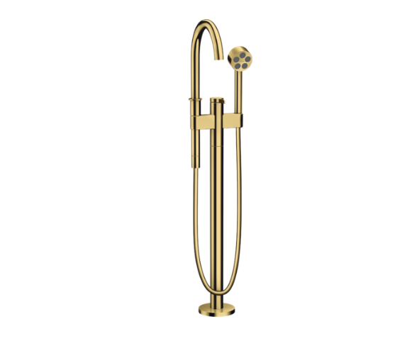 Смеситель для ванны и душа, Axor One, тип открывания воды-однорычажный, тип регулирования воды-керамический картридж, монтаж-напольный, отверстия для монтажа-1, вынос излива, мм-220, в комплекте-ручной душ, шланг для душа, держатель для душа, переключатель с автоматической переустановкой, внутренняя часть-необходимо заказать, цвет-полированное золото Смеситель для ванны и душа, Axor, Axor One, цвет-полированное золото
