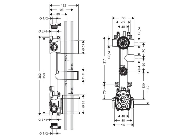 Внутрення часть, Hansgrohe, Axor Citterio E, назначение-для термостата, 38*12 c 3 розетками, для 3 потребителей, возможно одновременное включение 2 потребителей, расход воды при свободном протоке-59 л/мин, горизонтальный или вертикальный монтаж, звукоизолирующий монтаж Внутрення часть, Hansgrohe, Axor Citterio E, для термостата