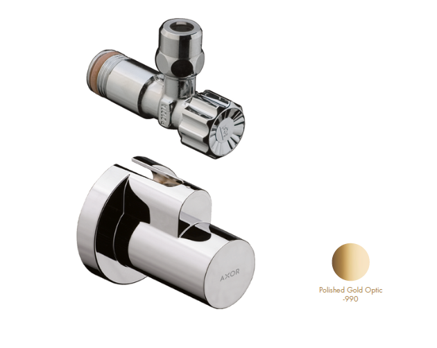 Вентиль, Axor, запорный угловой, 1/2", тип установки-настенный, цвет-полированное золото Вентиль, Axor, запорный угловой, 1/2", цвет-полированное золото