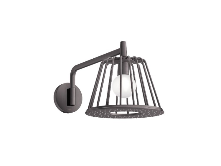 Верхний душ, Hansgrohe, AXOR LampShower/Nendo, тип установки-настенный, ширина, мм-275, глубина, мм-565, высота, мм-259, форма-круглая, количество режимов-1, тип струи-Rain, держатель-есть, размер держателя-380, внутренняя часть-необходимо заказать, цвет-шлифованный черный хром, диаметр душевого диска,мм-275, держатель для душа поворачивается по горизонтали в пределах 150°,материал-металл, со встроенным освещением, лампочка-LED, трансформатор 12 V, вход-100 - 240 Volt AC / 50/60 Hz, выход-12 V - DC, в комплект входит-соединительный кабель (7 м) и блок питания Верхний душ, Hansgrohe, AXOR LampShower/Nendo, шгв 275*565*259, цвет-шлифованный черный хром