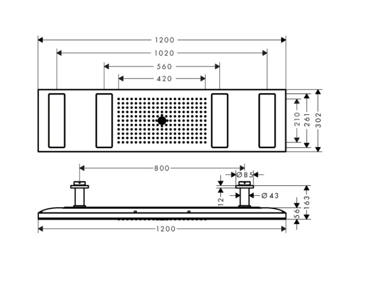 Размер верхнего душа, мм | 1200*300 |
