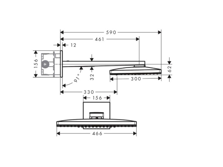 Верхний душ, Axor, Axor ShowerSelect, тип установки-настенный, ширина, мм-460, глубина, мм-300, высота, мм-62, форма-прямоугольная, количество режимов-2, тип струи-Rain, RainStream, держатель-есть, размер держателя-460, внутренняя часть-необходимо заказать, цвет-хром Верхний душ, Axor, Axor ShowerSelect, шгв 460*300*62, цвет-хром