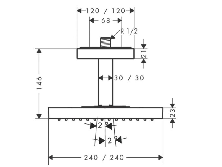 Верхний душ, Axor, Axor ShowerSolutions, тип установки-потолочный, ширина, мм-240, глубина, мм-240, высота, мм-146, форма-квадратная, количество режимов-1, тип струи-RainAir, держатель-есть, размер держателя-102, цвет-хром, размер душевого диска,мм-240*240*23, материал-металл, соединительная резьба G 1/2 Верхний душ, Axor, Axor ShowerSolutions, шгв 240*240*146, цвет-хром